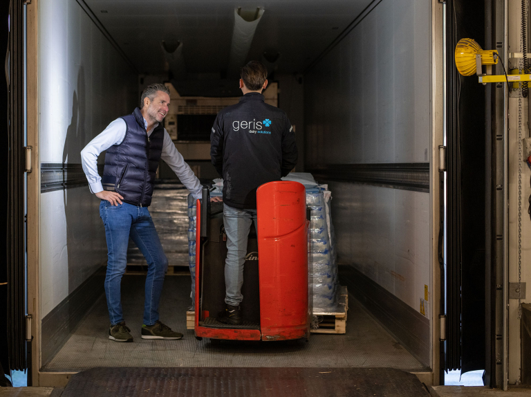 At Geris, you'll find Emmentaler cheese from the Netherlands, France, Germany, Ireland and Belgium, packaged in sacks of 15 to 100 pounds. As a wholesaler, we supply Emmentaler to cheese suppliers in the retail, foodservice and food industries. Every day we buy, sell, move and store quality cheeses all over the world. Always efficiently and with great care. Besides 100% quality and taste, at Geris you also benefit from smart solutions for storage, logistics, (re)packaging and service through our unique concept: Dairy as a Service.